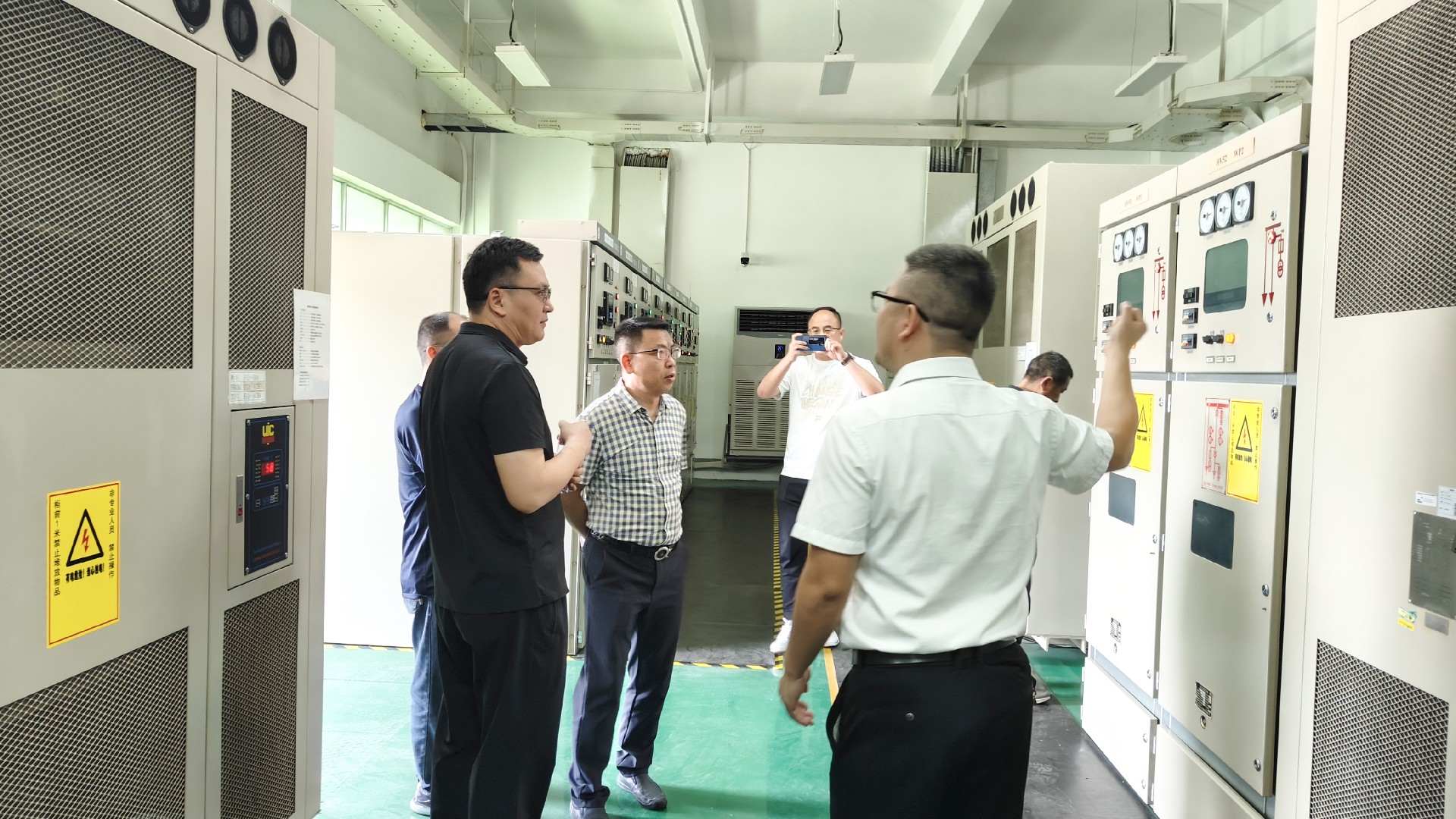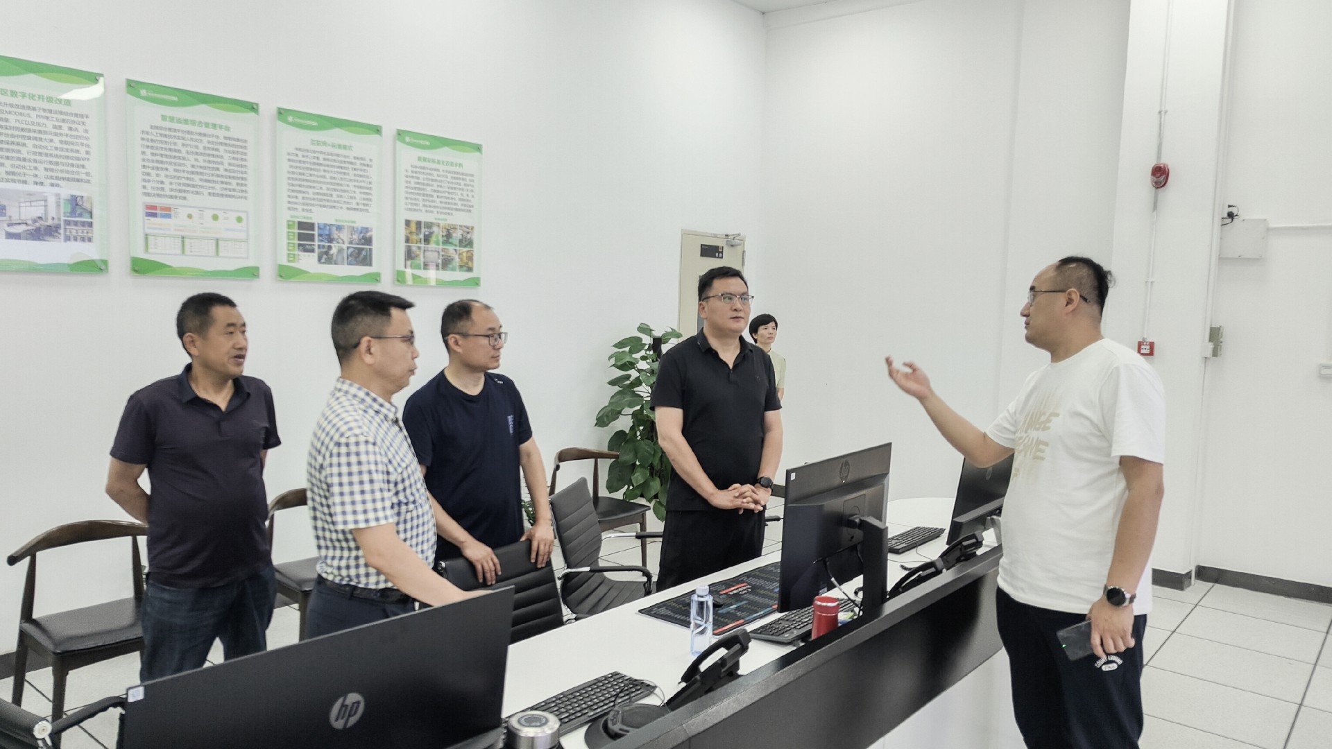 陸處長一行在賈總監(jiān)的陪同下參觀了園區(qū)“富慧能”智慧綜合能源運(yùn)維平臺(tái)、高低壓配電機(jī)房,雙方針對平臺(tái)管理的運(yùn)維模式、節(jié)能降耗解決方案等進(jìn)行深入交流。