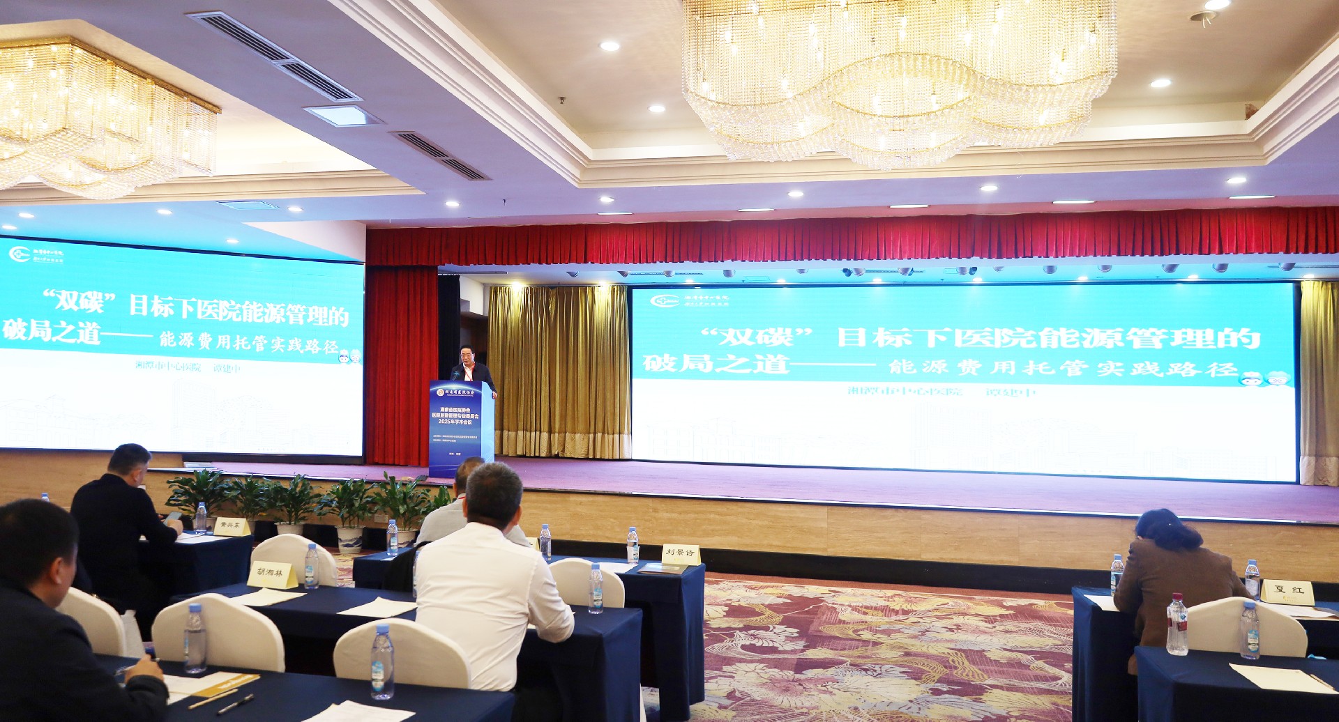 會議上,湘潭市中心醫(yī)院譚院長在開場致辭中多次對我司前期改造效果給予高度評價。在主題演講環(huán)節(jié),他立足醫(yī)院管理者的實際需求,以《雙碳目標下醫(yī)院能源托管的破局之道——能源費用托管實踐路徑》為題,從業(yè)主視角闡釋了能源托管模式在提升能效、優(yōu)化成本方面的實施路徑,為醫(yī)院后勤綠色轉(zhuǎn)型提供了可借鑒的實踐樣本。