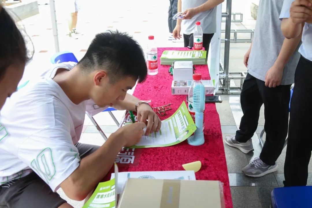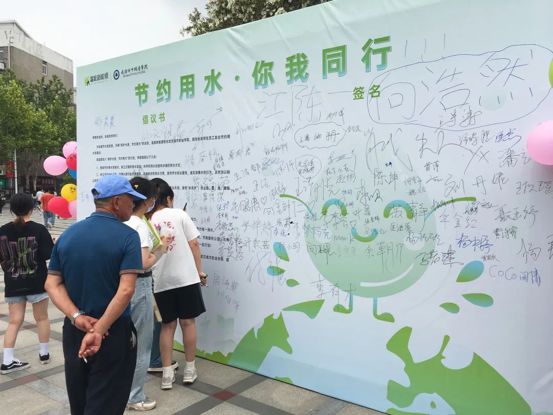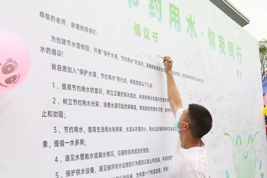活動最后,現(xiàn)場的老師、同學們相繼在富能倡議節(jié)水節(jié)能的倡議書上留下濃重的一筆。
