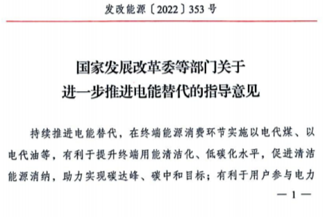 3月9日,國家發(fā)展改革委、國家能源局、工業(yè)和信息化部、財政部、生態(tài)環(huán)境部、住房城鄉(xiāng)建設(shè)部、交通運輸部、農(nóng)業(yè)農(nóng)村部、國家機關(guān)事務(wù)管理局、中國民用航空局等10部門聯(lián)合印發(fā)《關(guān)于進(jìn)一步推進(jìn)電能替代的指導(dǎo)意見》。