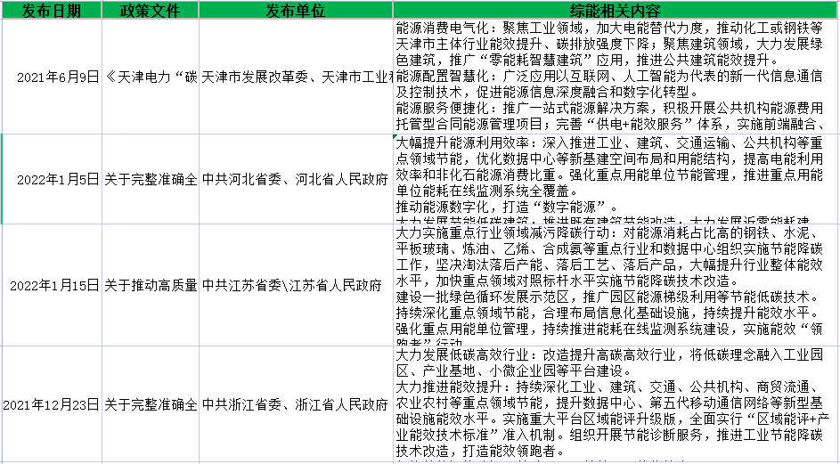 各省碳達(dá)峰碳中和(綜合能源服務(wù)相關(guān))政策匯編