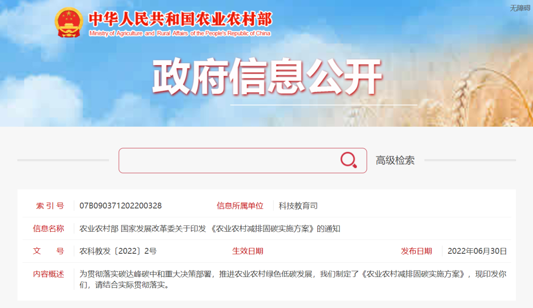 4.農(nóng)業(yè)農(nóng)村部、國家發(fā)改委:印發(fā)《農(nóng)業(yè)農(nóng)村減排固碳實施方案》