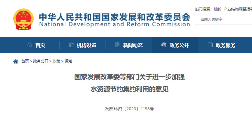 國家發(fā)展改革委等部門印發(fā)《關(guān)于進(jìn)一步加強(qiáng)水資源節(jié)約集約利用的意見》
